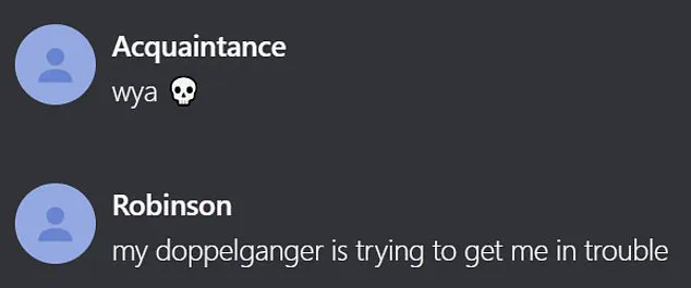 Robinson allegedly responded, ‘my doppelganger is trying to get me in trouble.’ Hours before surrendering to authorities, Robinson is said to have confessed to a small group of friends in a Discord chat, stating, ‘Hey guys, I have bad news for you all.