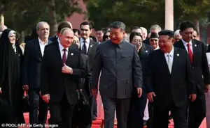 The event, dubbed a ‘New World Order’ by some analysts, showcased China’s military prowess with demonstrations of cutting-edge technology, including a laser weapon capable of disabling electronics or even blinding pilots.