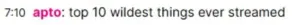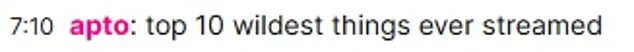 They were not kidding,’ one user wrote. ‘What in the everliving f***,’ another said. ‘Top 10 wildest things ever streamed,’ a third person wrote.