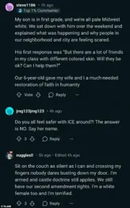 One user, a ‘white female,’ admitted to being ‘terrified,’ a sentiment echoed by others who feel the need to shield their children from an uncertain future.