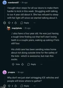The discussions have sparked a wave of posts on social media, with many parents explaining to their children the importance of ‘walking quietly to a safe room’ or ‘why people in the neighborhood are feeling scared.’ These preparations, while seemingly extreme to some, reflect a deep-seated fear that has permeated the community, even among those who identify as white and American-born.